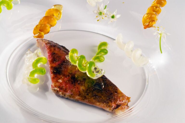В этом блюде высокой кухни от шефа Педро Субихана из ресторана Akelarre сочетаются оригинальные желатиновые фузили, заполненные соусом, с насыщенным вкусом океана. Который предлагает барабуля. Это блюдо присутствует в...